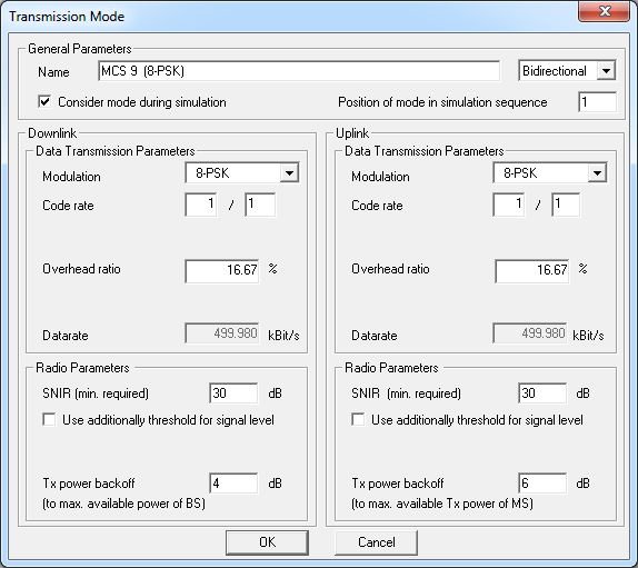 - If this option is enabled, the transmission mode is considered during network planning simulation. Transmission modes which are specified to be not considered during simulation, are displayed in red (see Figure 1).