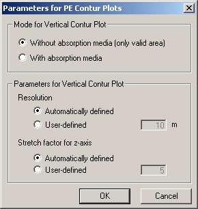 - The PE model appends an absorption medium at the top of the computation area to avoid reflections from the upper boundary. Here you can specify, if you want to output the contour plot with or without the absorption medium.