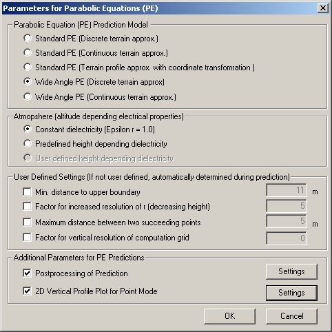 Figure 2. The Parameters for Parabolic Equations (PE) dialog.