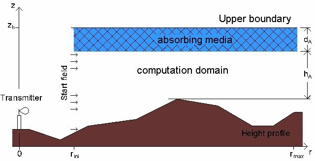 The results of the PE are only valid, if the propagation angle in respect to the horizon lies within -15° up to +15°. This is reason why the computation starts at the distance rini.