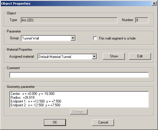 - The group assigned to the cross section element can be changed here. An element can be defined to be a hole by selecting the hole option. This is can be necessary for defining tunnel with open sections or tunnel junctions.