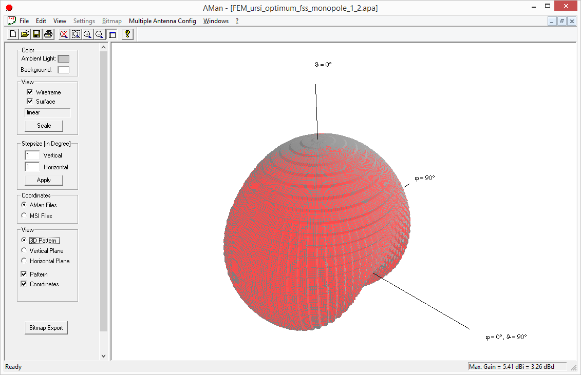 Figure 2. Antenna pattern of a WLAN router exported from Feko and displayed in AMan.