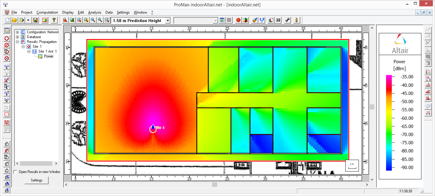 The workflow for a typical indoor propagation simulation is to use WallMan to create the geometry, Feko or AMan to produce the antenna pattern and ProMan to simulate the model and view the results.