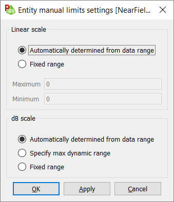 For dB scaling, the following options are available to control the value range of the result:- Automatically determined from data range