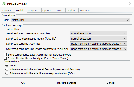 CADFEKO has various default settings that you can configure to customise it to your preference.