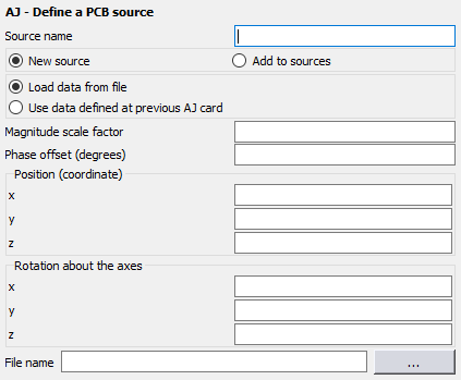 - When using multiple AJ cards (different radiating PCBs in the same model) where the current data is identical, it is allowed to load the data just once and at subsequent AJ cards to check this option. The last defined PCB will be used and memory can be saved (no need to store it again). Note that it is still possible to set the PCB position, orientation as well as amplitude and phase individually.