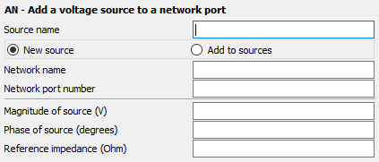 Figure 1. The AN - Add a voltage source to a network port dialog.