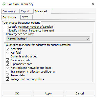 Figure 1. The Solution frequency dialog (Advanced tab).