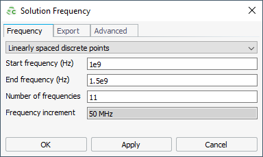 Figure 1. The Solution frequency dialog (Frequency tab).