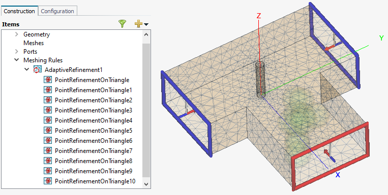 For each iteration, an adaptive mesh refinement rule is added to the model tree (Configuration tab).