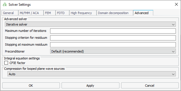 - It is recommended to use the default settings. Changing the preconditioner is recommended only for advanced users.