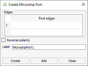 Figure 1. The Create Microstrip Port dialog. - In the Port edges table, specify the edges for the microstrip port.