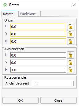 Figure 1. The Rotate dialog. - Under Origin, specify the origin for the rotate operation.