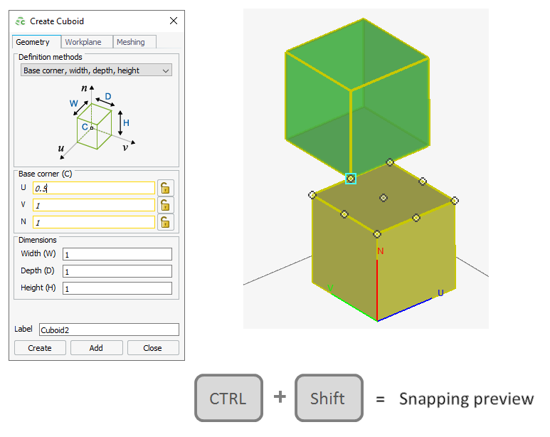 Specify the snapping targets and workplane grid that apply when pressing Ctrl+Shift.