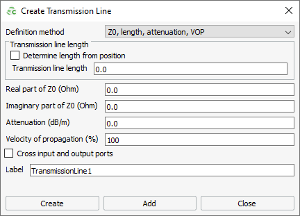 Define an ideal, non-radiating transmission line. In the network schematic view, connect the transmission line to