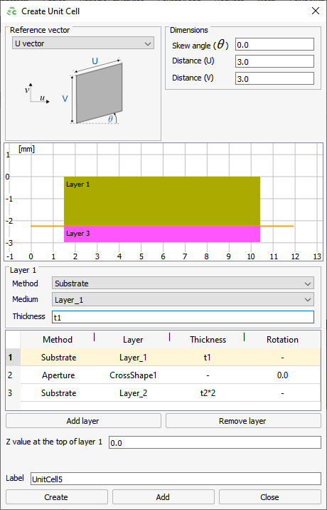 Tip: A skew angle of 0 degrees yields a rectangular unit cell.