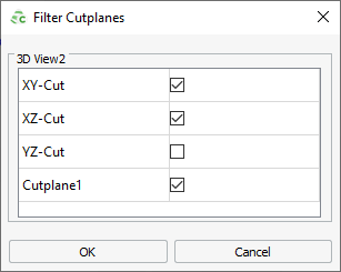When more than one 3D view is used, the already active cutplanes can be modified on a per-view basis using the Filter tool.