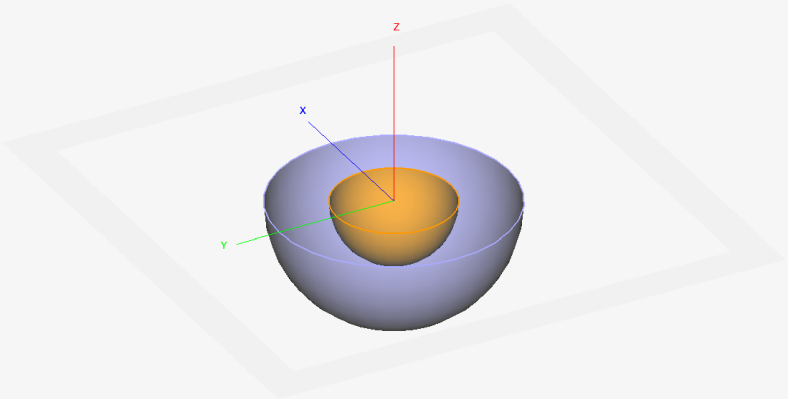 Figure 1. A simple example of a cutplane preview. The cutplane cuts through a larger sphere revealing a smaller sphere inside.