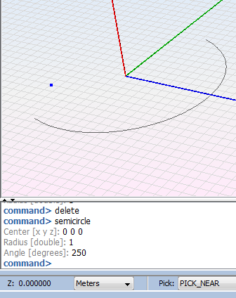 This option creates a semicircle around a center point and with a radius, both specified by the user. This function also receives as a parameter the direction in which the arc of the semicircle is generated if the angle is 0, the semicircle is created in the positive Y axis direction, and greater angles describe a counter-clockwise rotation around the Z axis).