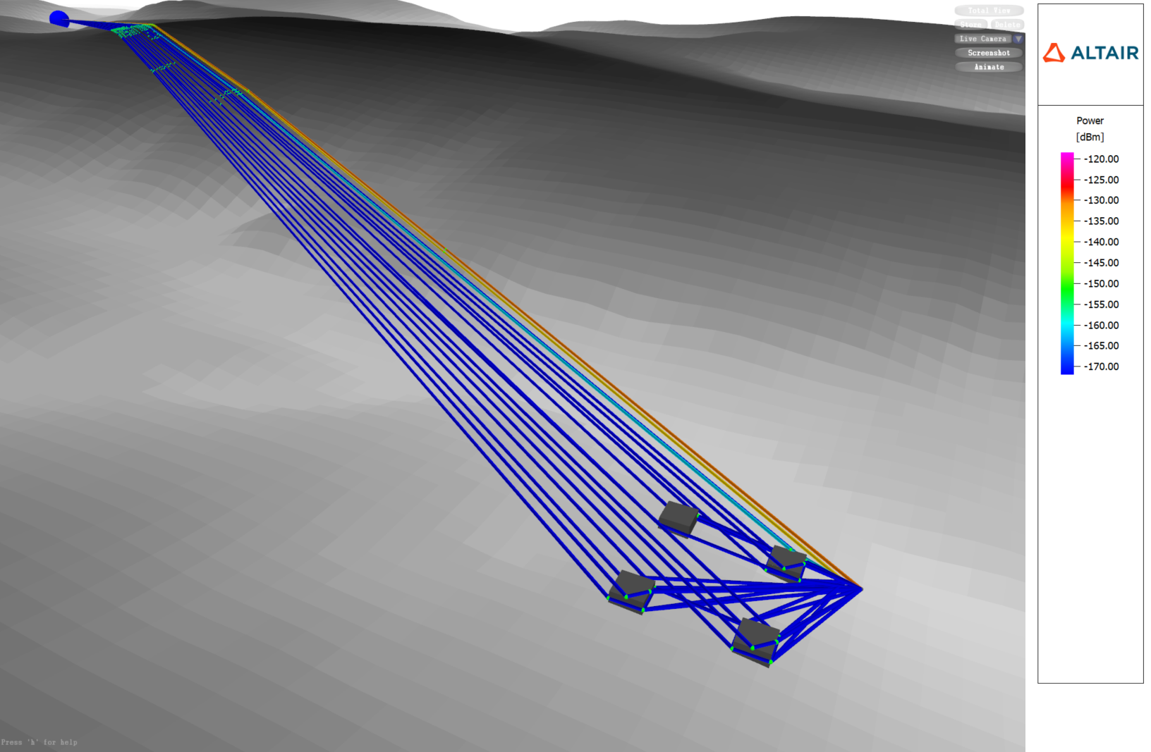 Figure 4. 3D multipath in an urban scenario where the transmitter is shadowed from the buildings due to hilly terrain. - A library of traffic objects (with an explanation and examples) is now available on