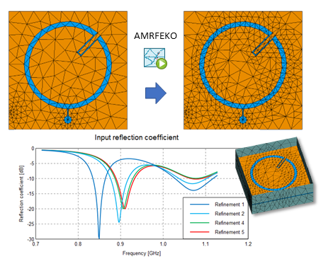 - A new tool (AMRFEKO) is now available, which enables automatic adaptive mesh refinement based on error estimates for FEM and MoM/FEM solutions. The fully-automatic tool can be launched from a command prompt or any of the Feko GUIs and can also be used on HPC resources in a similar fashion to RUNFEKO.