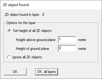 Figure 4. The 2D object found dialog.Note: The .dxf file for this example only contains 3D objects (no 2D objects). -