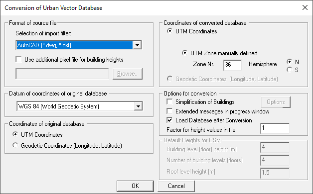Figure 1. The Conversion of Urban Vector Database dialog. - Keep the default settings on the dialog.