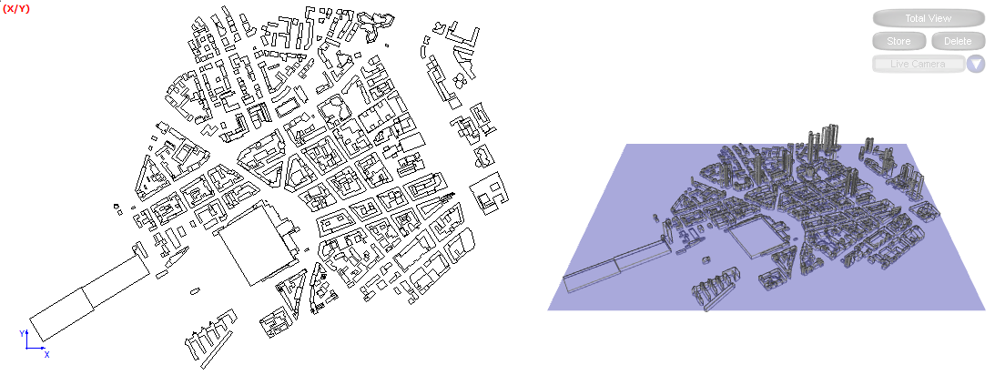 Figure 6. Top view of Frankfurt (on the left) and 3D view (to the right).