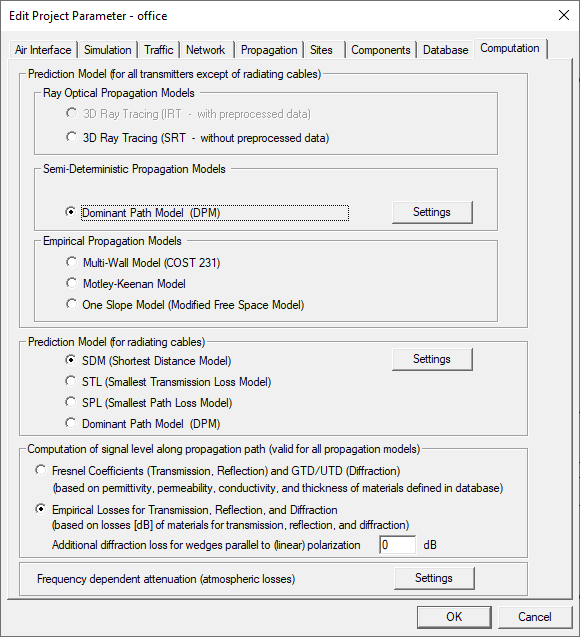In WinProp various air interfaces and applications are pre-defined: broadcasting, cellular, wireless access, WiFi, sensor networks, ICNIRP and EM compliance.