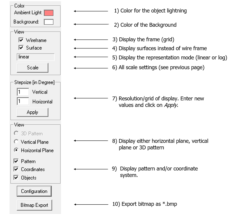 Figure 3. Different background colors. - To draw the antenna pattern with a wire frame, check the
