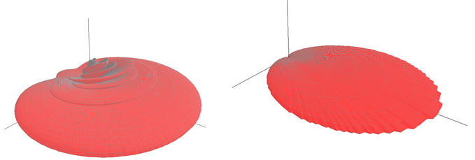 Figure 7. Everything identical except the angle increment: 1° (left) and 5° (right). - The pattern can be displayed either in 3D mode, or the vertical and horizontal