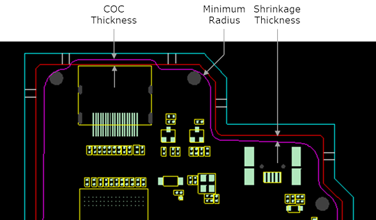 - COC Thickness: The base line should be formed avoiding the component area to prevent interference with the component. The component COC (Component Outline) on the PCB design data should be expanded by the set value to prevent interference with the component.