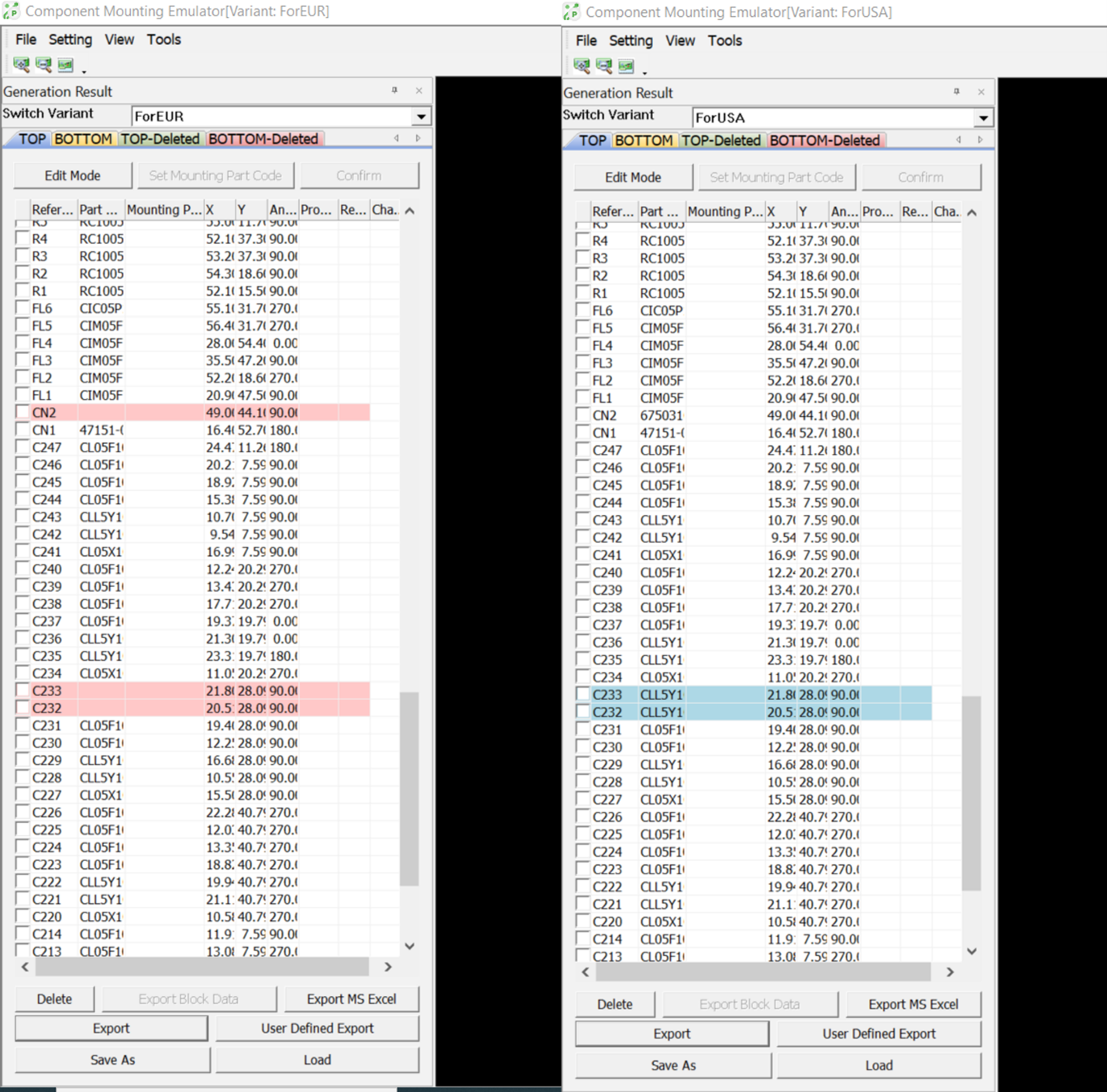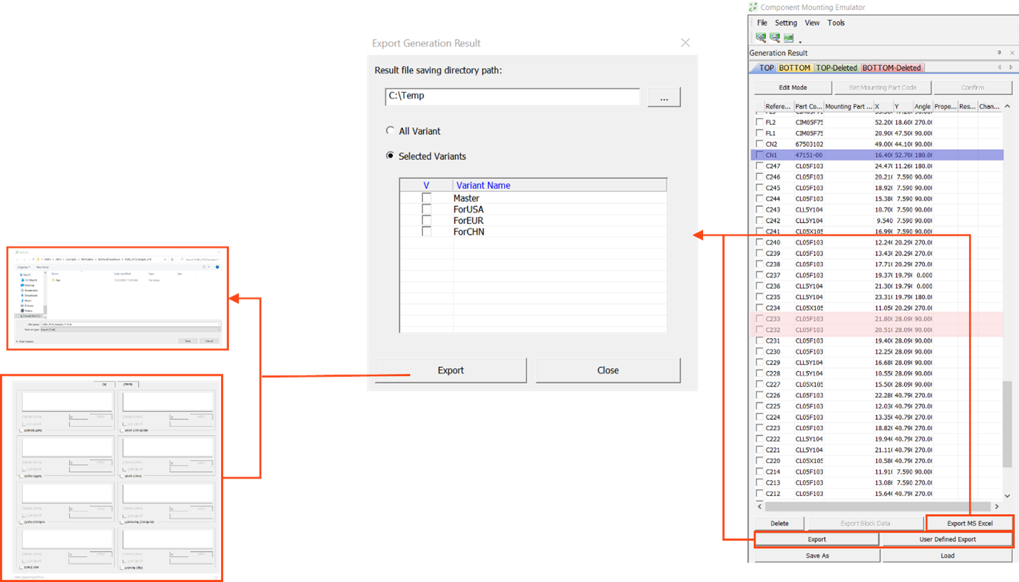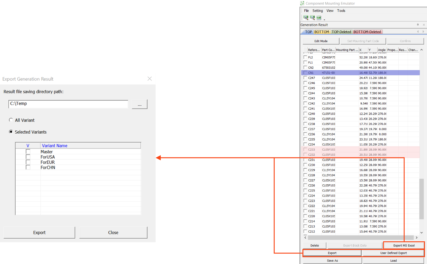 Export: Mount data of the mounter format selected on the Direct Generation Setting screens for all Variants can be exported.