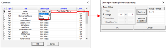 - Contents: Upon double-clicking the contents column, depending on selection type in Select Type column, the tool opens the Comment Select, String Filter, or Range Setting window.