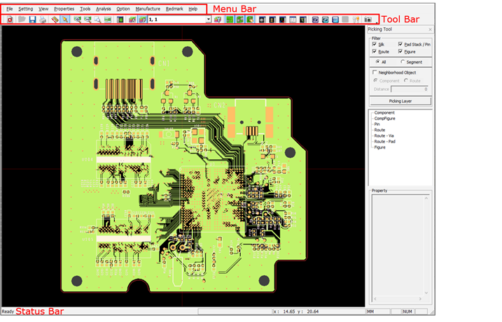 Use the File menu to check basic functions, import ECAD files into PollEx PCB, and export working design to 3rd party EDA vendor formats.