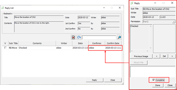 1. Click Reply () on the right side of dialog, add the comment with captured image.