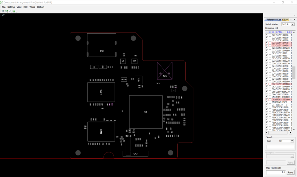 Figure 1.You can also view the variant list by selecting the variant from the SWITCH VARIANT selection box on the reference list.For variant with an NP status an X is displayed on the component and the components name in the reference list is highlighted with Red.