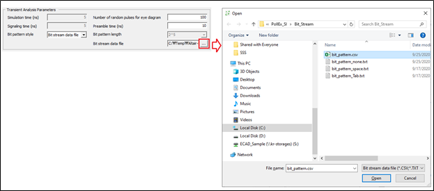 - Bit stream data file: assign bit stream data file, you can use CSV and TXT