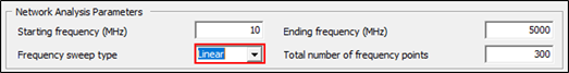 Figure 5. - Network Analysis Parameters: specify the start and end frequencies, total