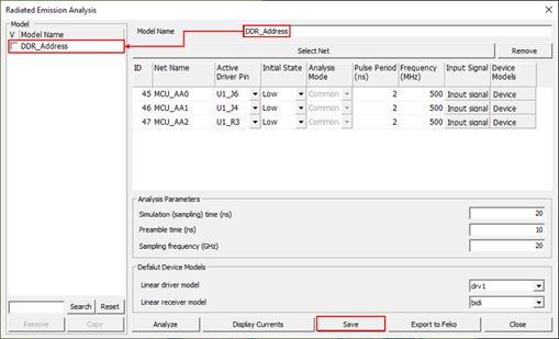 Figure 5. - Export to Feko: the simulation result will be exported in XML format file. This file is saved in Radiation/Model_Name directory under the PCB design job folder. The model name plus .REI is used for the file name.