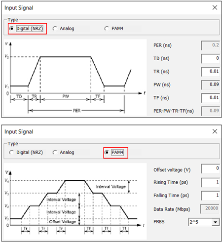 Through the Input signal menu, users can set up an NRZ input and PAM4 input respectively as mentioned below: