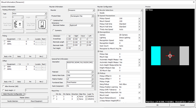 - Mounting Machine Information: Define the control and carrier data of the mounting machine.