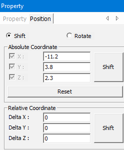 - Relative Coordinate: Display and edit the relative values to move the pin.