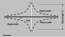 • If the trace lies offset toward one end of the slot, the inductance is less.