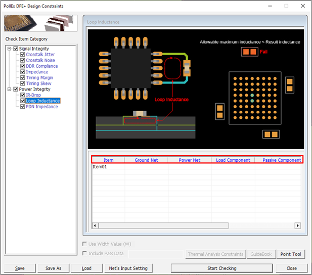 • Max Inductance(pF): Enter maximum allowable loop inductance value in pF.