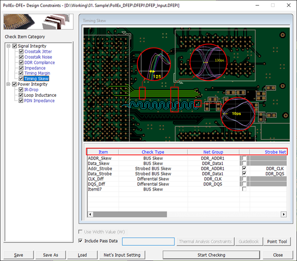 • Strobed BUS Skew: Check the delay time difference between bus nets and strobe signal.