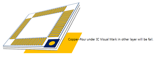 • Check for all layer: If IC visual mark is placed on a certain layer, even on the other layer, it cannot to be overlapped with copper-pour in the other area.