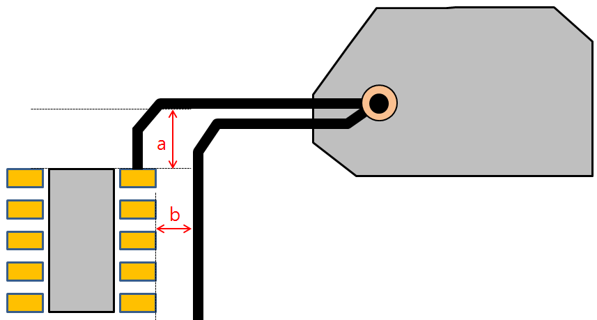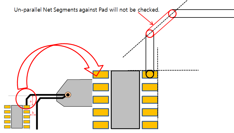 In Figure 3, even though the result of measuring a and b violate the input condition, in a case, the net segment is directly connected to pad. So, only the b case will be fail. Checking target net segments will be parallel along pads side directions.