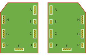 Verifies the position of the component and that the net connected to the pin is designed symmetrically, because this design combines two PCBs with the symmetrically placed components in each design.