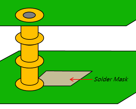 • Check Existence of Solder Mask in Via’s region at reverse Side of Thermal Pad: Check if solder mask is overlapped with via on reverse side of thermal pad placed layer. If so, it is a fail.